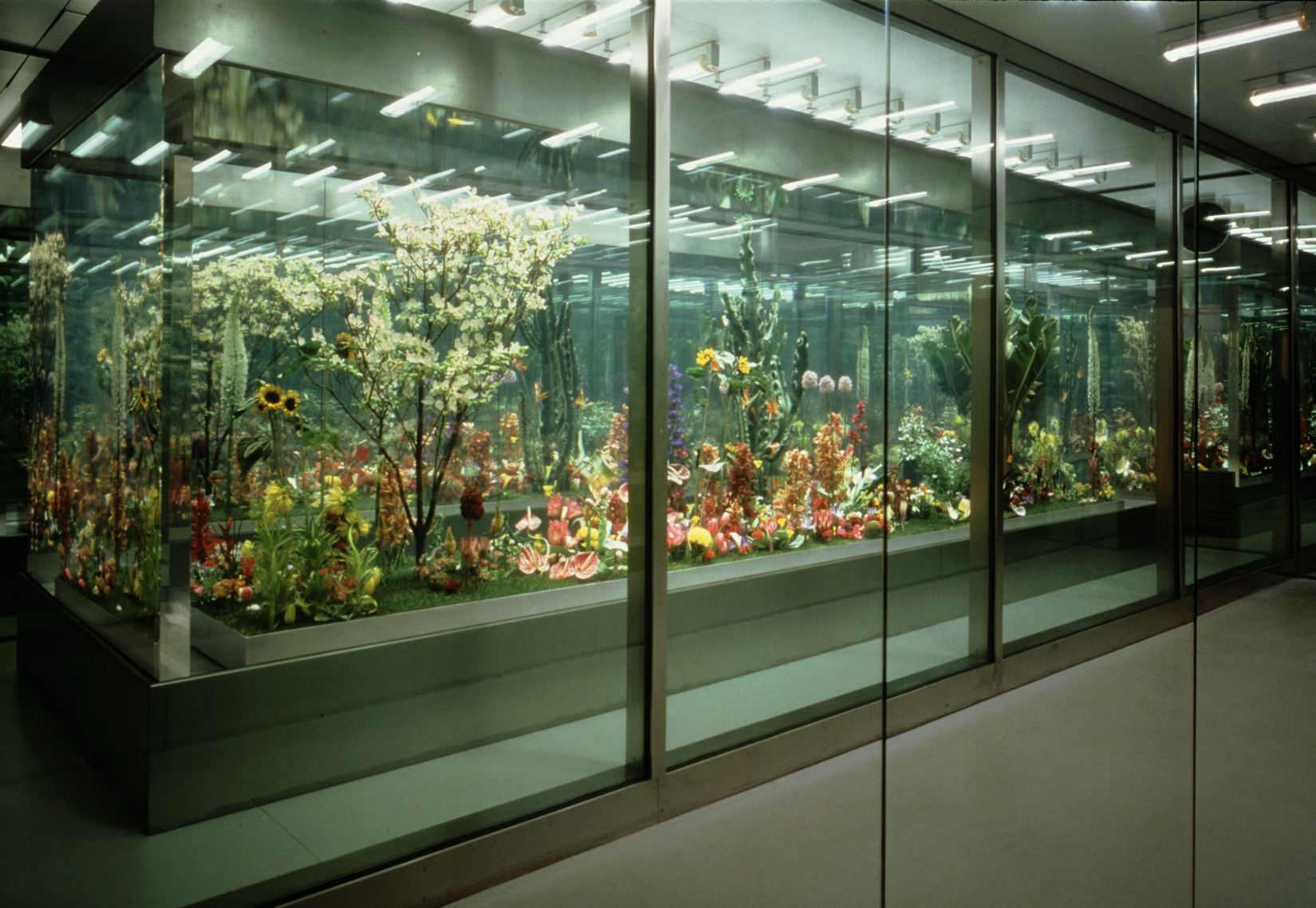 - MediumCold room, stainless steel, heated glass, refrigeration equipment, mirrors, acrylic tank, low viscosity silicon oil held at -20°C turf, plants, flowers