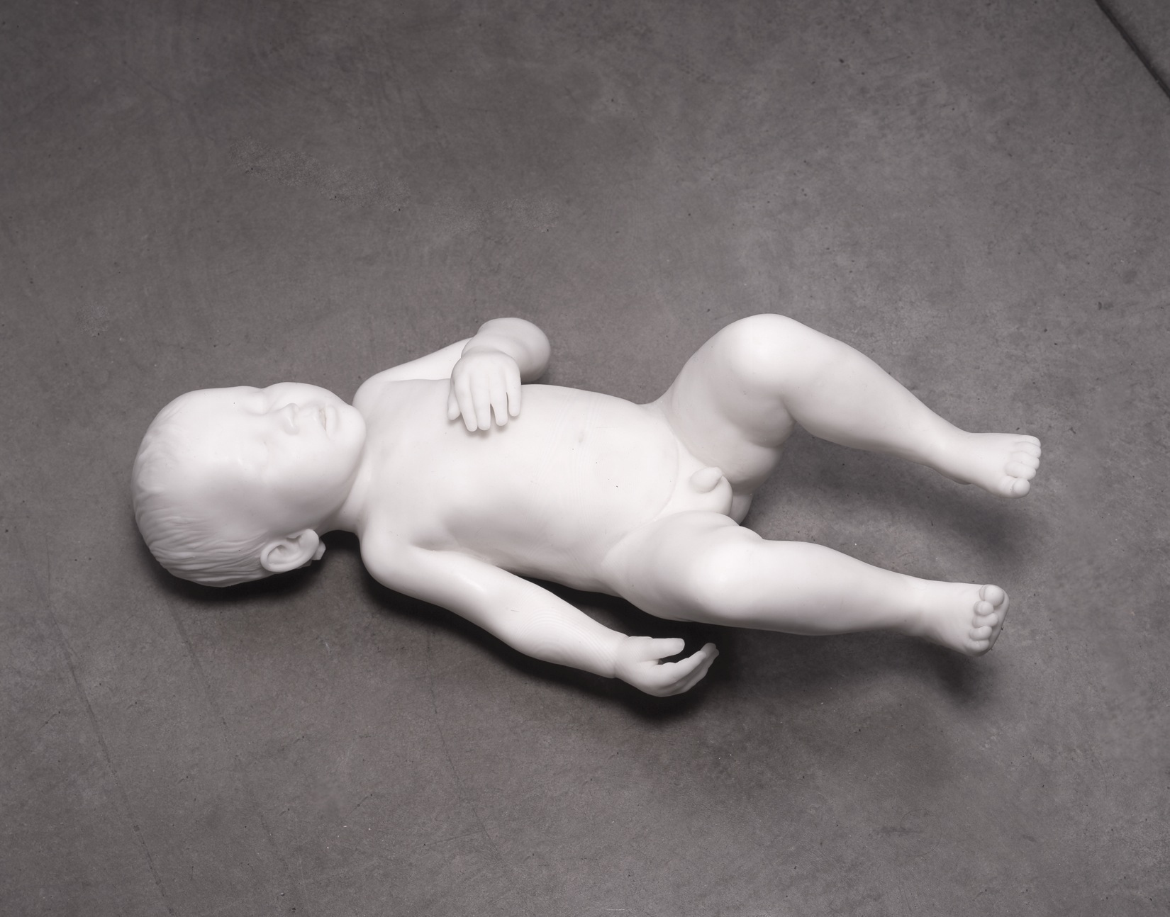 “In 2003, my son had a severe anaphylactic reaction to the first bottle of formula baby milk he was given.?His allergy was so severe that milk and wheat were life-threatening for the first three and a half years of his life. Apart from his mother’s breast milk he could only drink Neocate, a food powder made in the lab which the body does not recognise as milk. This inspired me to make the sculpture Innoscience, a sculpture of him at eight months asleep, cast in a special high-melt polymer wax mixed with Neocate milk powder. It was like a chemical equivalent for the changes in his body and a celebration of science and medicine. After making this piece I became interested in other conditions which could be kept in check by taking a drug or compound. What I also realised was that these sculptures are like the marble ones (The Complete Marbles) turned inside out, the lack is interior and invisible and the prosthetic is chemical, not physical. All the figures are portrayed sleeping, but with the bedclothes and pillows removed, which gives them the impression of floating just above the ground on which they are displayed.” - Marc Quinn, Recent Sculptures Catalogue, Groninger Museum, 2006